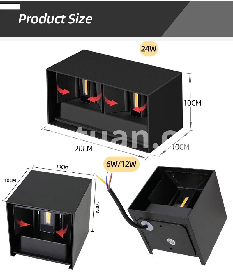 ●The LED wall light indoor/outdoor provides excellent lighting effect and IP65 waterproof performance. The modern design makes this 6W/12W/24W wall light ideal for indoor and outdoor scenes, such as bedrooms, living rooms, balconies, offices, corridors, gardens, courtyards, etc.