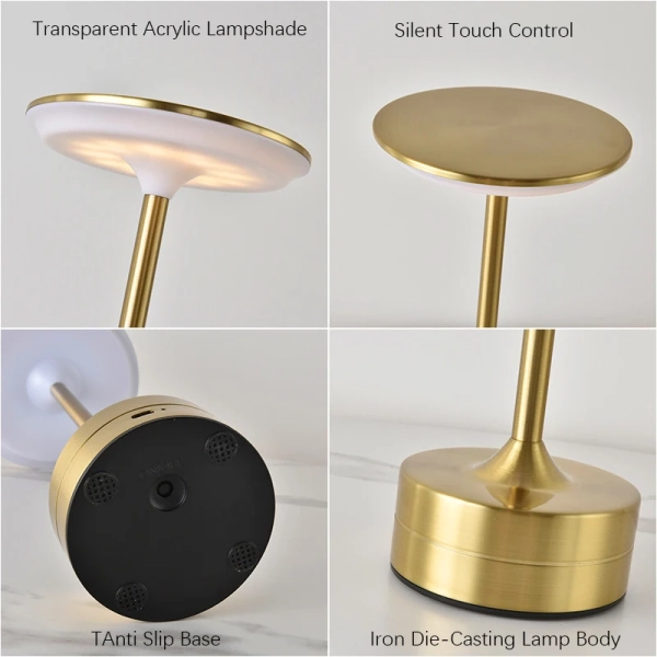 【Silent Touch】: Our desk lamp adopts a silent touch system. Simply click on the top of the light to change the color. Long press the top to adjust the brightness. This intuitive control method ensures smooth and quiet operation, making it easy to use in any environment, even in a quiet bedroom or focused work environment. 【Color temperature adjustment】: Enjoy the flexibility of three color temperature options. You can choose white light to create a bright and fresh atmosphere, natural light to provide more balanced and comfortable lighting, and warm light to create a comfortable and warm atmosphere. Whether you need bright light for reading or work, or soft and warm light for relaxation, this lamp can meet your needs. 【 High quality material 】: Transparent acrylic lampshade: The lampshade is made of transparent acrylic, which not only evenly diffuses light, but also gives the lamp a modern and elegant appearance. Cast iron lamp body: The lamp body is made of cast iron, durable and luxurious. The gold and black options add a touch of delicacy, making it easy to match different interior decoration styles. T anti slip base: The lamp holder is designed with anti slip function to ensure that the lamp remains stable on any surface, prevent accidental tilting, and improve safety. 【Fashion Design】: This desk lamp comes in two classic colors, black and gold, with a stylish and minimalist design. Its compact size, with a top diameter of 12.8 centimeters (5.04 inches), a bottom diameter of 9 centimeters (3.54 inches), and a height of 28.2 centimeters (11.1 inches) (as shown in the seventh picture), makes it suitable for various spaces such as bedside tables, desks, or side tables.