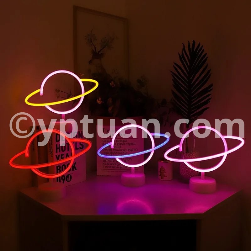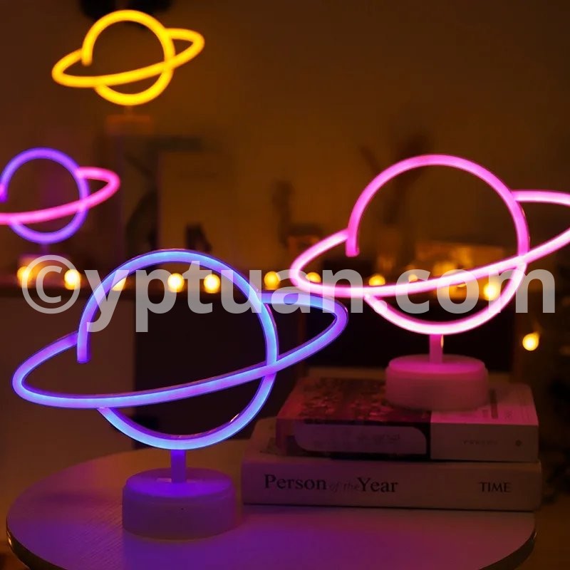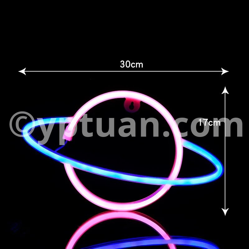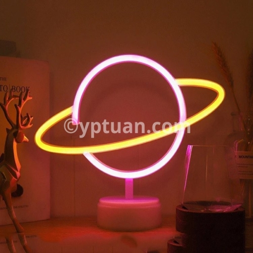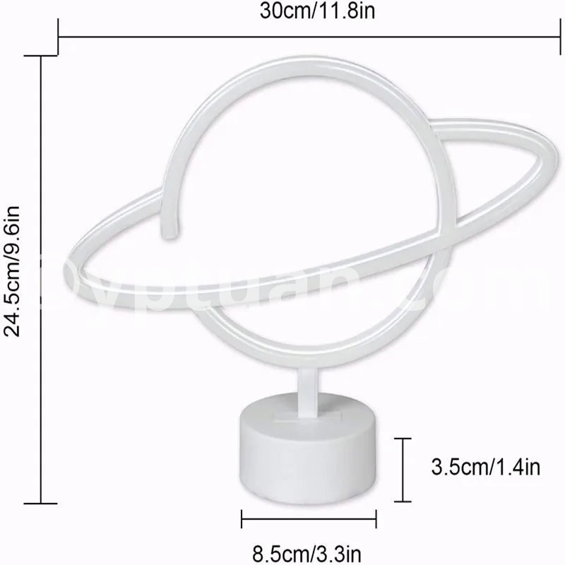 Feature Beautiful and modern decorative led neon lamp. Decoration for wedding, party, home, club, bar, shop. It offers a warm light and romantic atmosphere to your place. Optional ways to be placed:There is a hole behind the lamp, you can hang it on the wall,or place it on the table. Fast and easy to install. Perfect Gift for Valentine's Day, Christmas Day, New Year Day, Birthday Day, Etc. Specification Without stand style Type: Cute LED Neon Light Material: Plastic+LED Light Color:Warm White/ Pink/Blue Powered by: 3xAA Batteries (Not Included) or USB Powered Items Size planet with holder :30X24.5cm ; planet no holder:17X30 Stand style Type: Cute LED Neon Light Material: Plastic+LED Light Color:Warm White/ Pink/Blue Powered by: 3xAA Batteries (Not Included) Package Included 1 x LED Neon Light (Batteries not included)