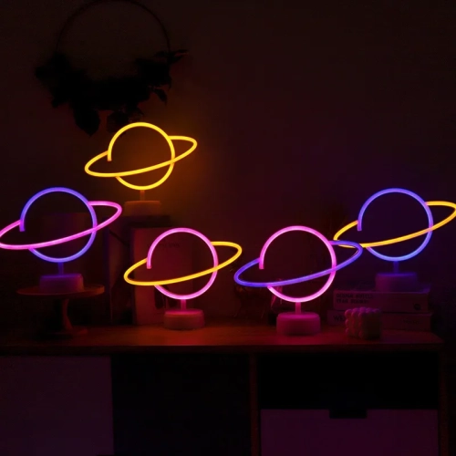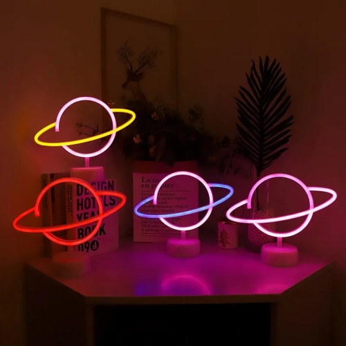 Party Room Neon Lamp Elliptical planet Shaped earth LED Sign Neon Light Battery Home Decorative Wall Light Christmas Lighting