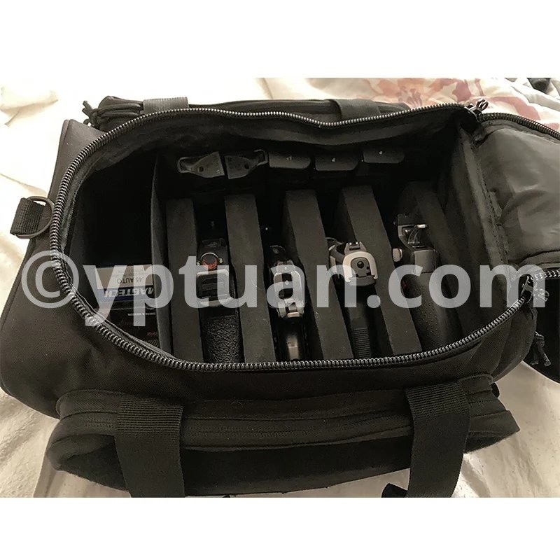 Pistol range bag main compartment with 2pcs removable inner partitions main compartment to individual as tactical range shooting bag or photography duffle