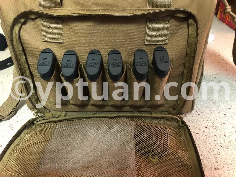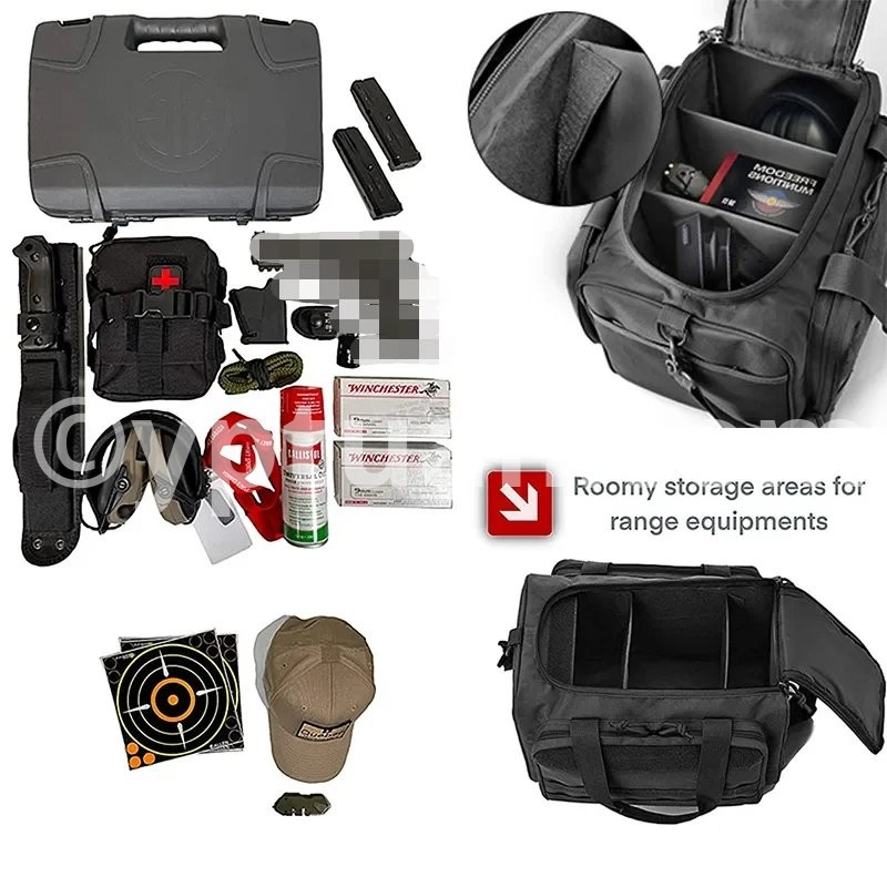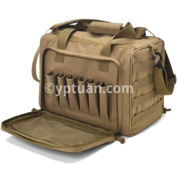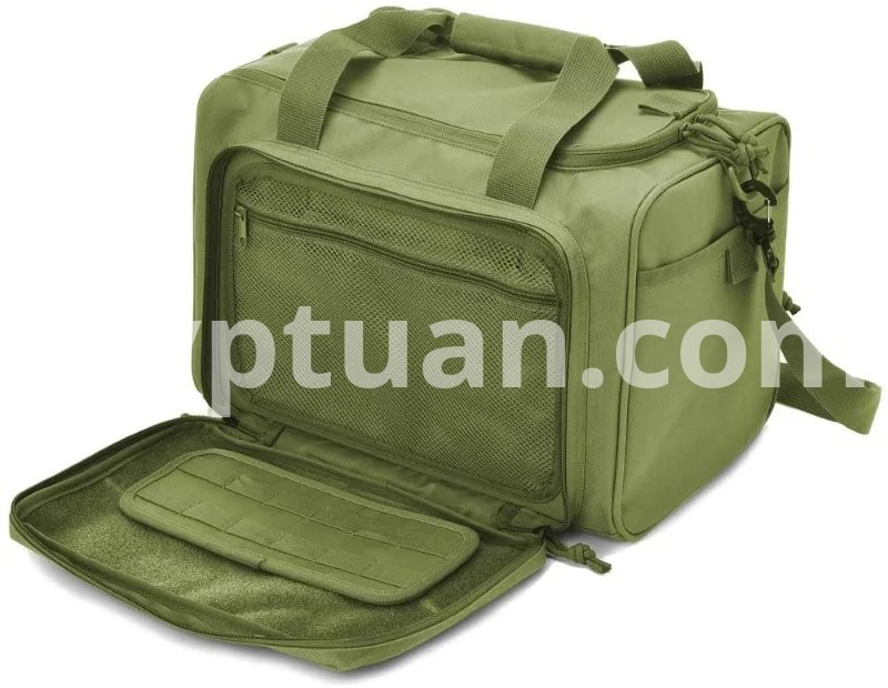 Function:Shooting range bag has padded multiple compartments to keep your handguns,earmuff, goggles, magazine, ammunition and accessory etc safetly and scratch resistant.