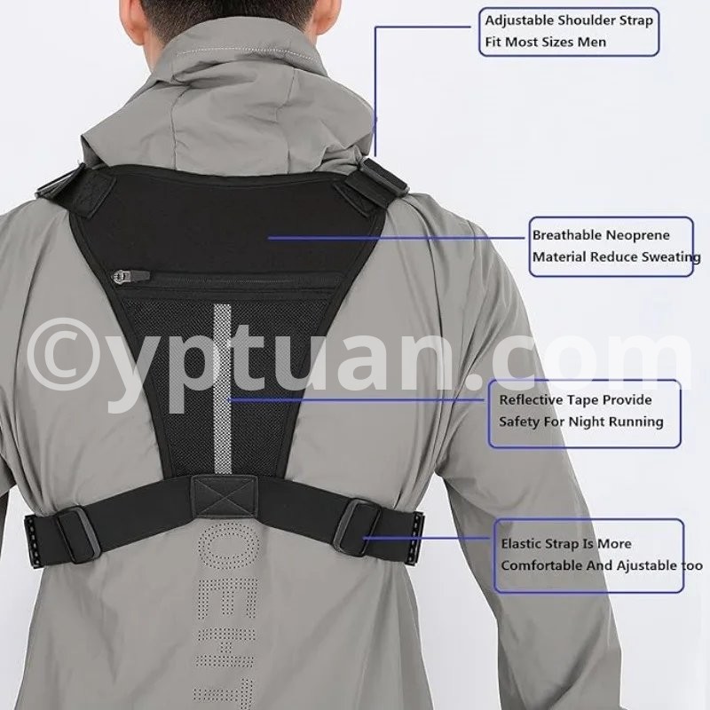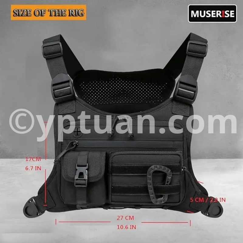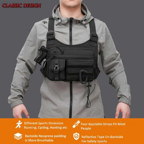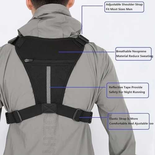 * Adjustable Straps: With fully adjustable straps, the chest bag Vest provides a comfortable fit for most body types, ensuring stability and comfort on your outdoor adventures. At the same time, this chest pack is an ideal companion, ensuring your hands stay free and your belongings secure.