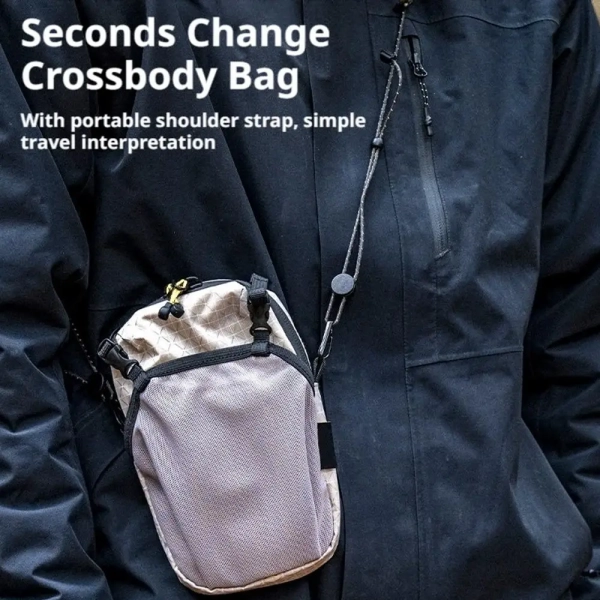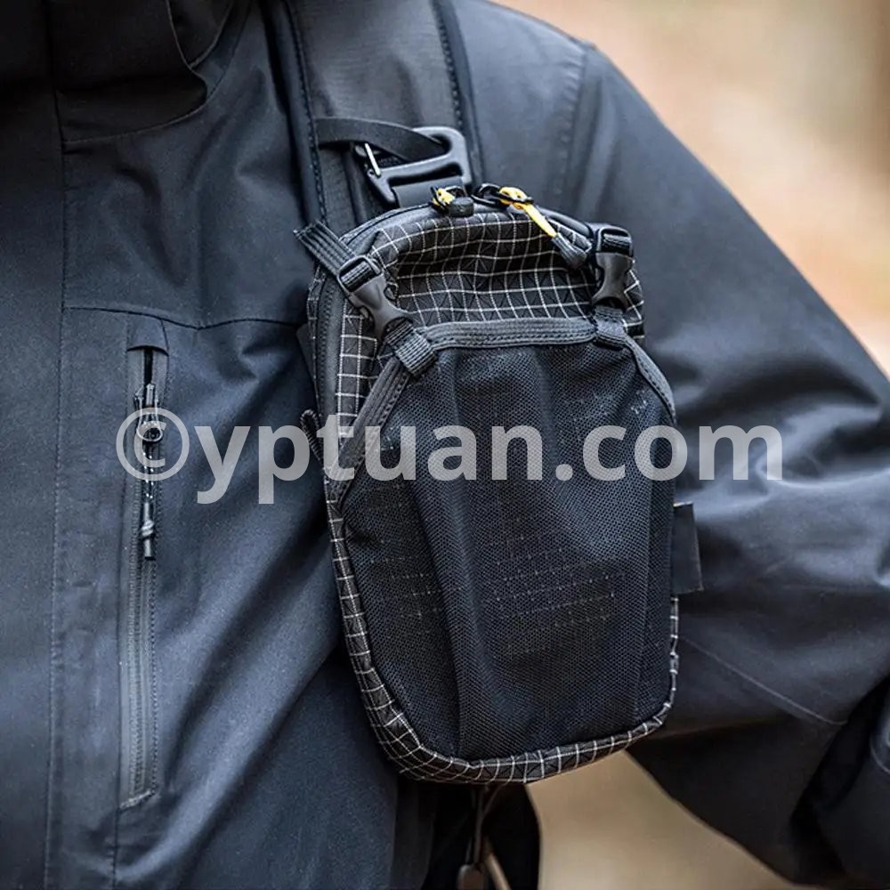 4. Versatile carrying options include attaching to a backpack's shoulder strap, using it as a crossbody bag, or as a standalone waist bag. The adjustable shoulder strap ensures it stays securely attached to a thick jacket or outdoor gear, preventing it from shifting during movement.