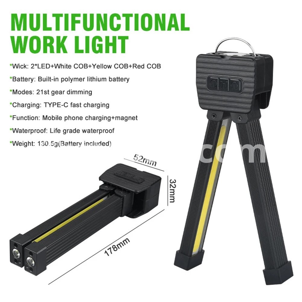 Gym Lamp for Posing Magnetic LED Flashlight with Hanging Hook Inspection Lamp USB Rechargeable Portable Torch Light for Car Repair Home Garage Emergency Features: 1.Versatile LED Flashlight: This LED flashlight perfectly adapts to various settings. Ideal for gym selfies, videos, or professional studio recordings. It delivers even light to eliminate shadows and highlight muscle definition, featuring a 360° rotatable tripod for flexible angle adjustments. 2.Rechargeable & Highly Sturdy: Perfect for outdoor workouts or extended shooting sessions. The USB-C cable supports fast charging, compatible with charging through a power bank, laptop, or wall outlet. 3.Waterproof & Portable: With an IPX4 waterproof rating, this gym lamp withstands sweat and light rain. Its compact design fits into any gym bag. This lightweight portable torch light is ideal for quick, convenient workout shoots, making it a great choice for outdoor fitness enthusiasts. 4.Multi-Functional for All Creatives: Suitable not only for fitness enthusiasts but also as backlighting for live streaming, product photos, or makeup tutorials. The soft light distribution reduces eye strain, and it can even be used as a night light. 5.Elegant Gift: This inspection lamp with a modern design is perfect for special occasions such as birthdays, Thanksgiving, and Christmas.Specification: Origin: Mainland China Power: 5W Brightness: 500 lumens Lighting mode: 6 lighting modes 180° folding, strong magnet, hook, power display Size: 300 *51*30mm when unfolded, 178*51*30mm when folded Material: aluminum alloy + ABS Battery life: 2-5 hours Voltage: 3.7V-4.2V Power supply: USB charging, built-in 1200 mAh polymer lithium battery Color: as shown Note: Due to different monitor settings and lighting conditions, the actual color of the item may vary slightly from the pictures. Thanks for your understanding! Please allow a 1-2 cm difference in measurements due to manual measuring.
