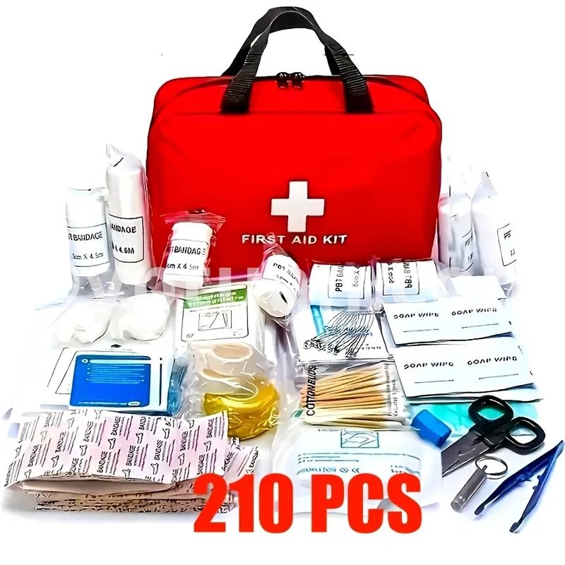 210pcs First Aid Kit Bag All Purpose Emergency Survival Home Car Office Travel Camping Outdoor Boating Essential Medical Bag