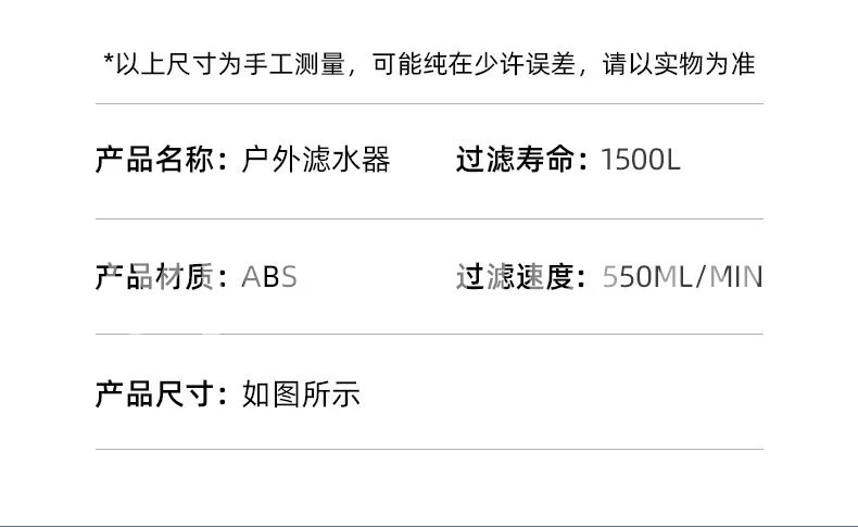 1500L Outdoor Personal Water Filter Portable Water Purifier Survival Straw Ultra-Light 0.01 Micron 4-Stage Filter System