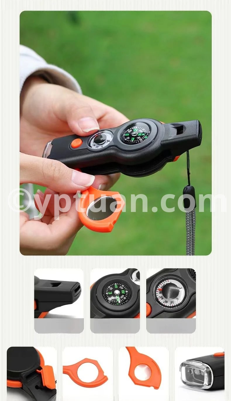 Outdoor Camping 7-In-1 Multi-Function Whistle Survival Whistle Safety Whistle For Hiking Travel Accessories