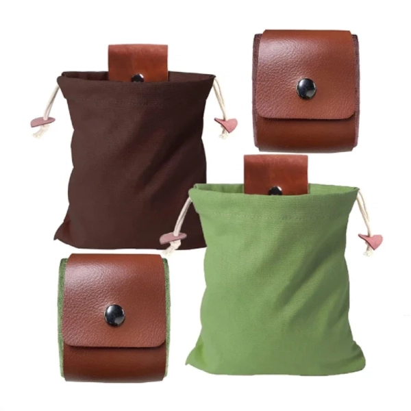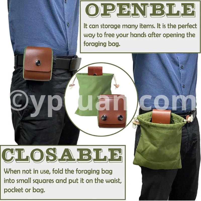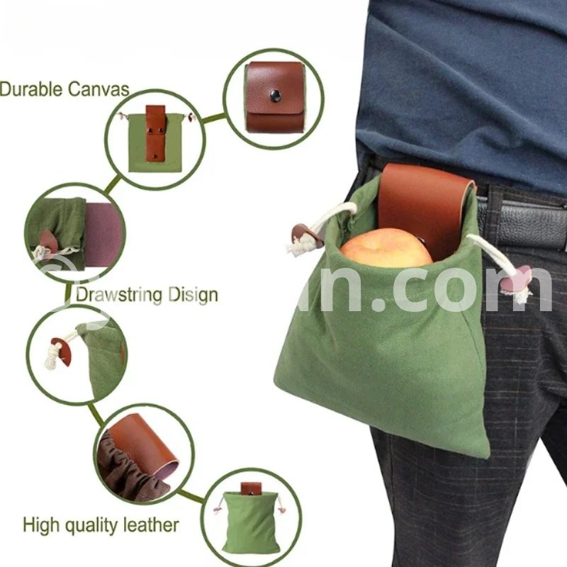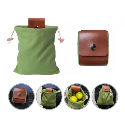 1pc Foraging Bag Fruit Picking Collapsible Berry Leather Portable Rugged Outdoor Canvas Waist Pack Fieldwork Outdoor Tools