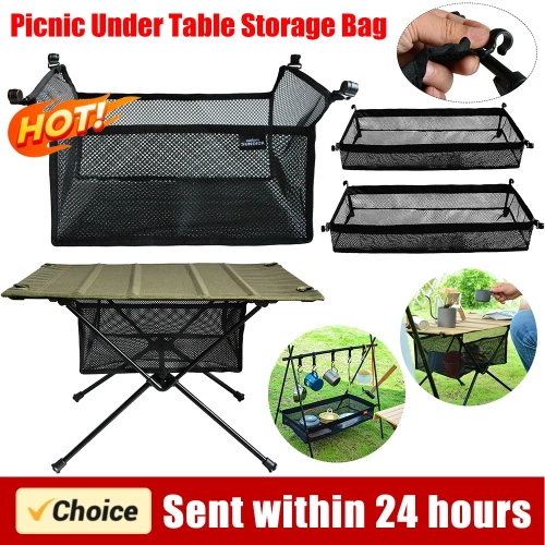 Mesh Basket Organizer Camping Foldable Table Storage Net Bag Under The Table Mesh Pouch Under Table Storage Bag for Camping