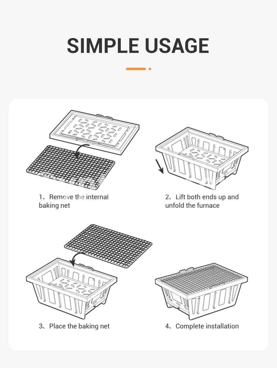 One-piece structure for easy portability :The one-piece structure of the stove makes it easy to fold and transport, making it perfect for camping and outdoor activities.