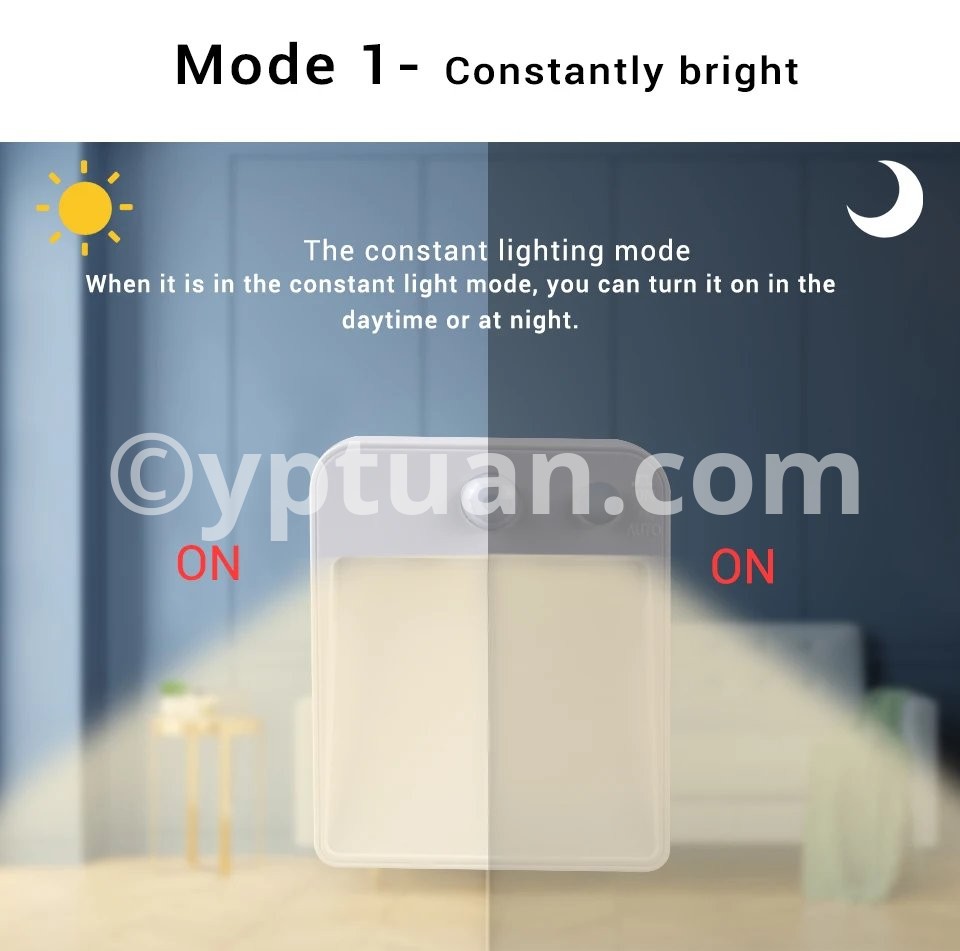 Features: 1.Motion sensor: Build-in motion detector, automatic turn on if the sensor was triggered animals or humans and automatic turn off after 25s motion ceased in the detecting range. 2.Build-in light sensor: Build-in light sensor which deactivate the motion sensor function in the daytime to save energy. 3. Simple Mounting: The light comes with 3M adhesive sticker that enables you to stick it on a cabinet or on the wall as you prefer. You can install it in seconds without screws to avoid damaging any furniture or wall, disassembling it easily without extra tools. 4.Multiple Occasions : Broadly applied to multiple occasions include children’s room, hallway, bathroom, kitchen, bedroom, living room, closet, wardrobe, cabinet, basement, stairs, corridor, etc. Specifications: Name: Motion Sensor light Light source: 2835 SMD LED quantity: 2pcs Emitting color: Nature White(4000-4500K) Power: 0.8W Voltage: 4.5V Powered by: 3*AA batteries (not included battery) Detecting distance: 3M Material: ABS+PC