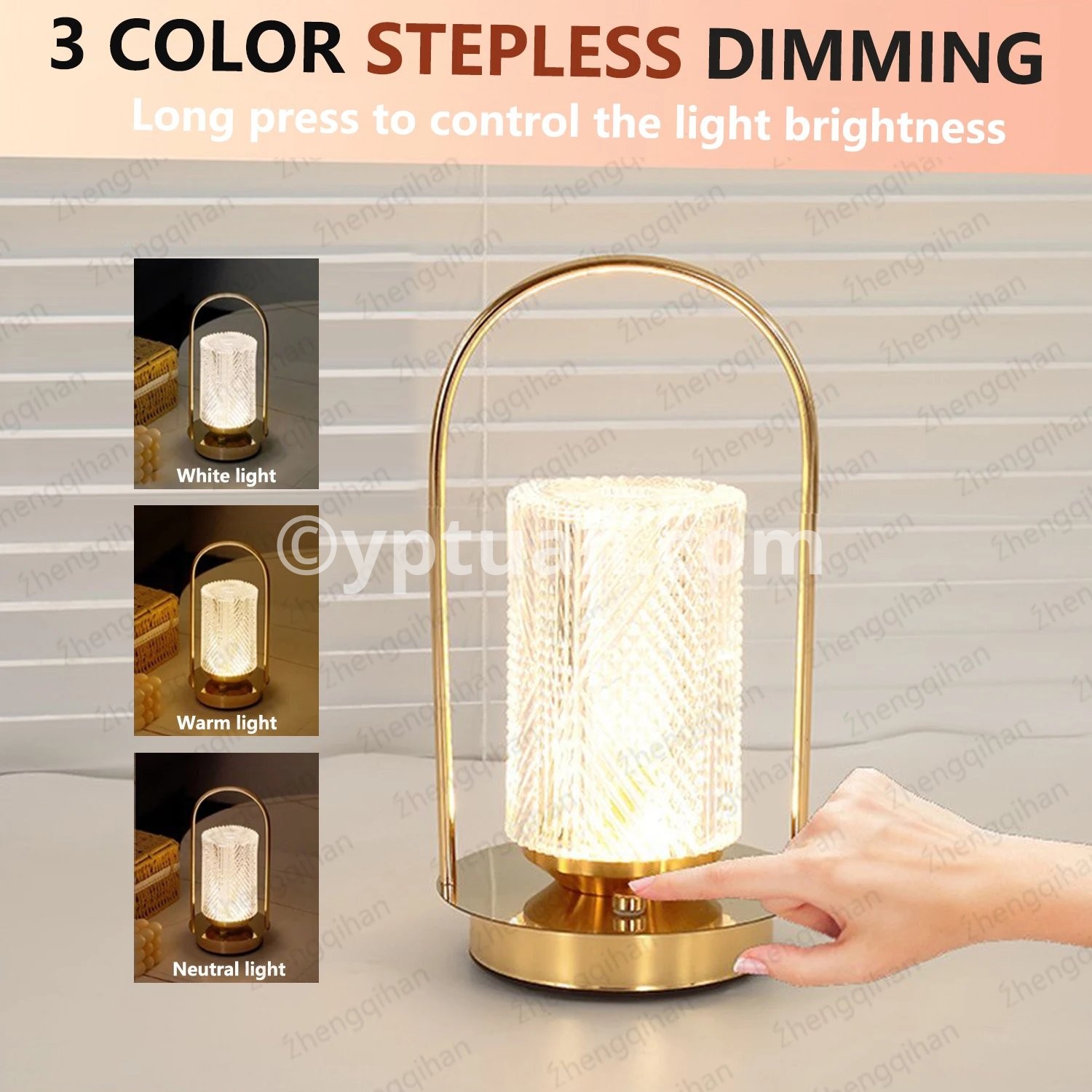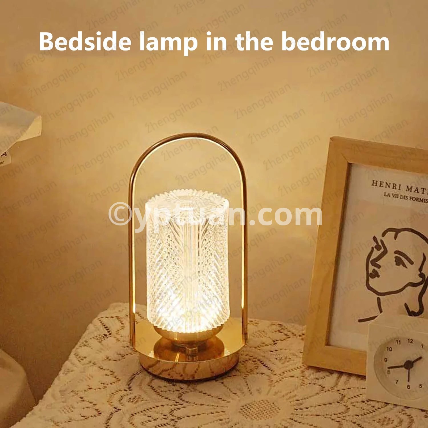 Wireless Table Lamp Rechargeable Portable Bedroom Bedside Touch Crystal Desk Lamp Night Light LED Decor Lights for Bar Coffee
